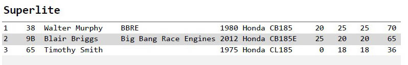 Superlite: 38 Junior Murphy, Honda CB185 2:10.9200